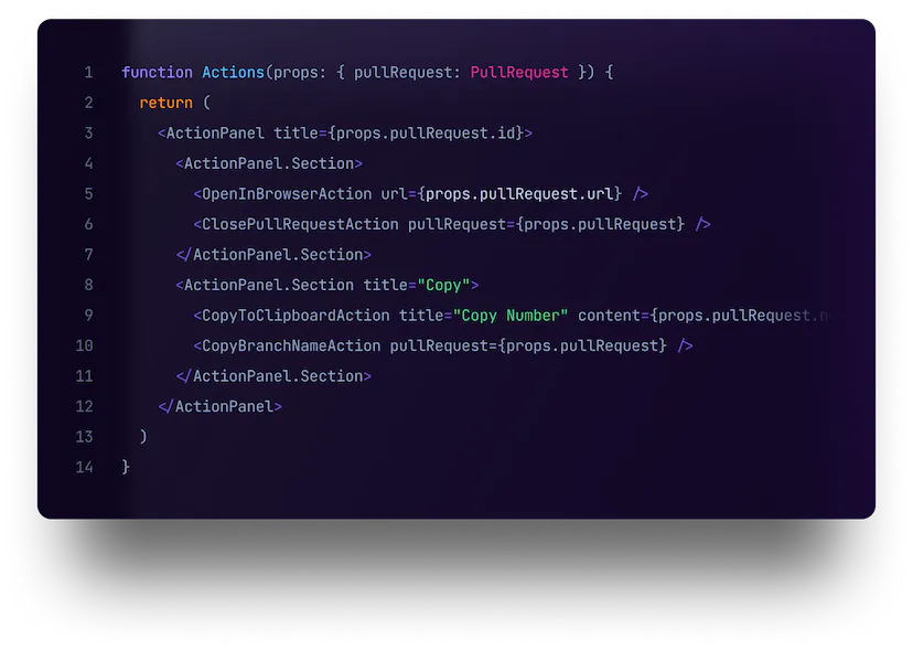 Start building your perfect tools with the Raycast API, and streamline your workflows. Simply create Extensions with ease and publish directly to the Raycast Store seamlessly.
